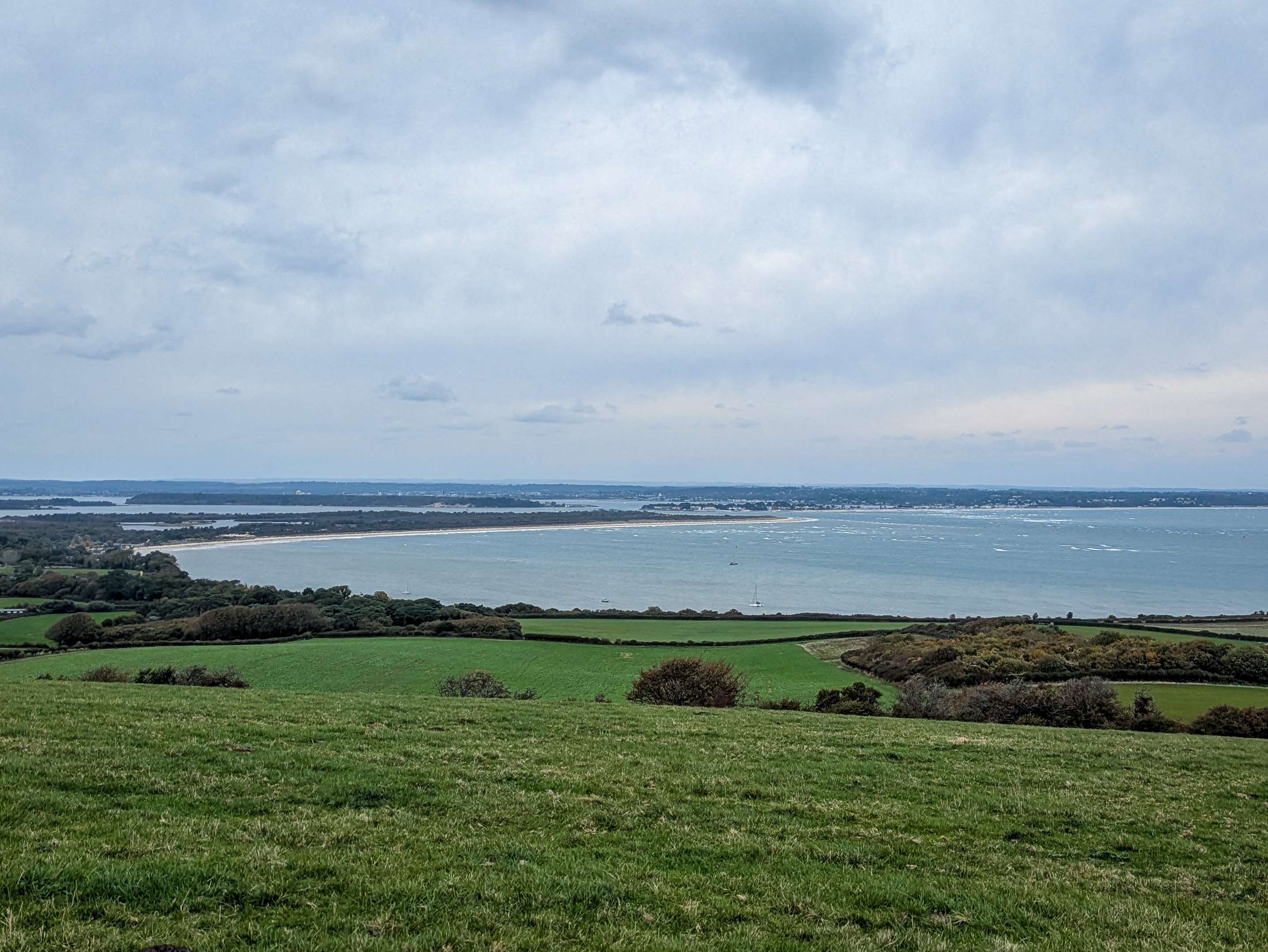 Up on the top of the Ballard Down ridge, capturing a good chunk of Poole Harbour.