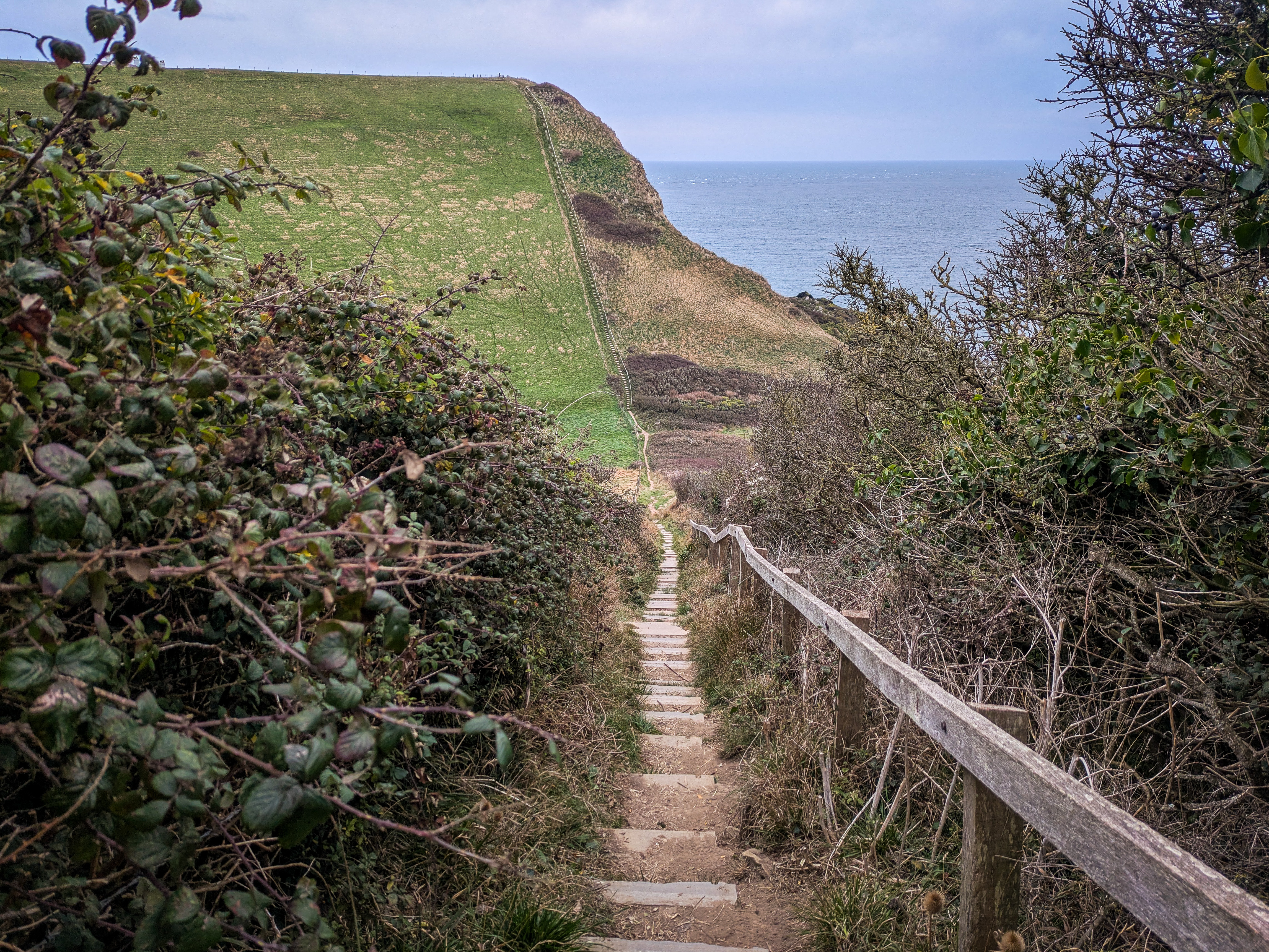 This is a view from about two thirds of the way up the climb. You can see the line of the descent on the other side, and I'd stopped to have a little breather and get this photo back the way I'd just come.